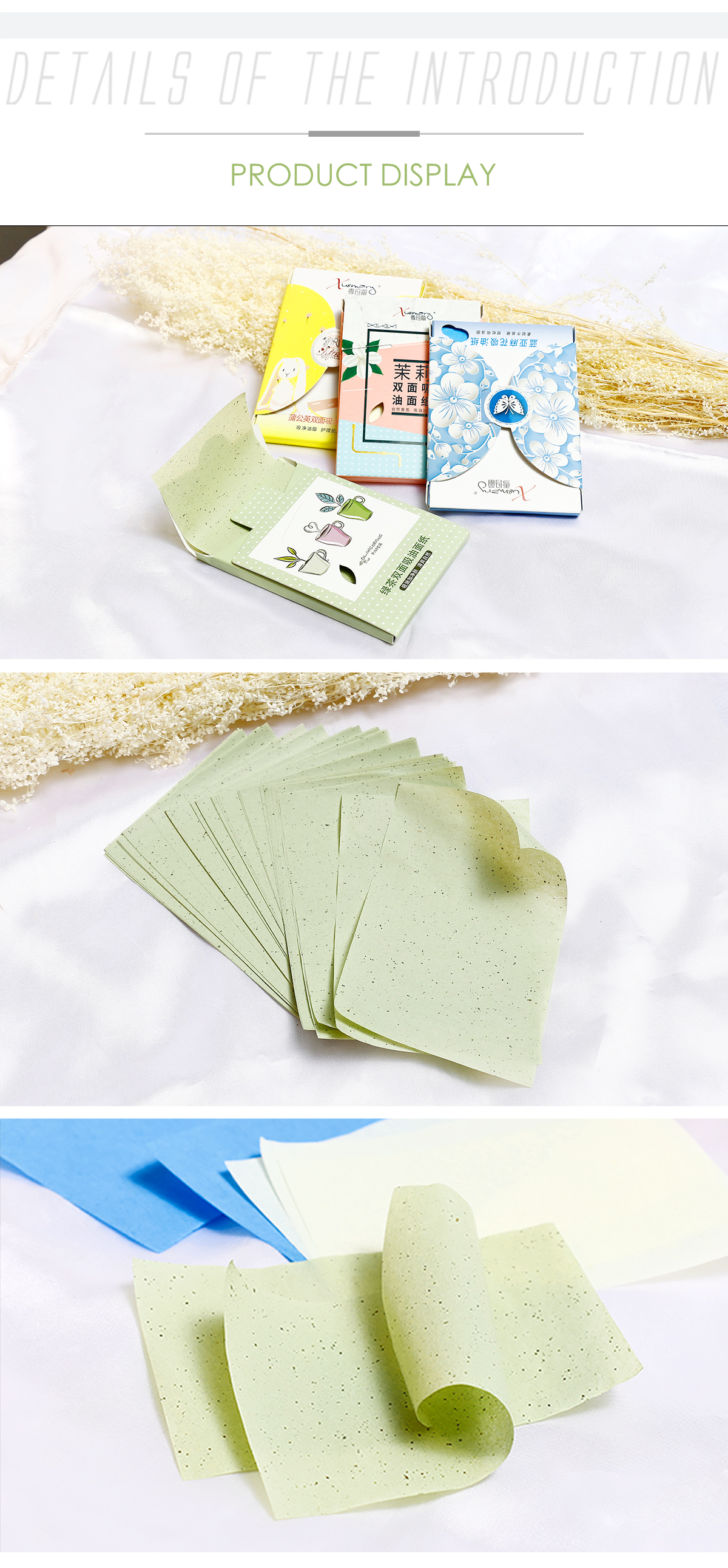 Material: Green tea/Jasmine/Dandelion/Flax blue
